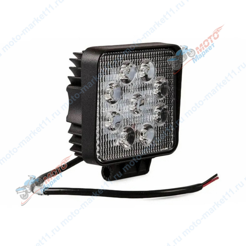 Фара светодиодная 27W, 9 диодов SMD, толщина 55мм, квадратный металлический корпус, дальний свет (Spot)