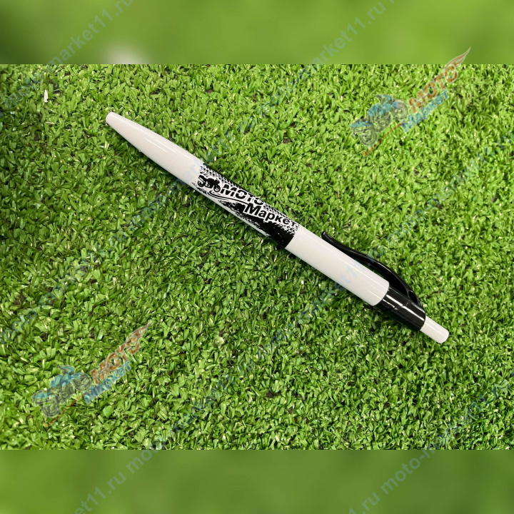 Ручка с логотипом Мотомаркет, классические чернила. Будет хорошим дополнением к подарку любителям мототехники.