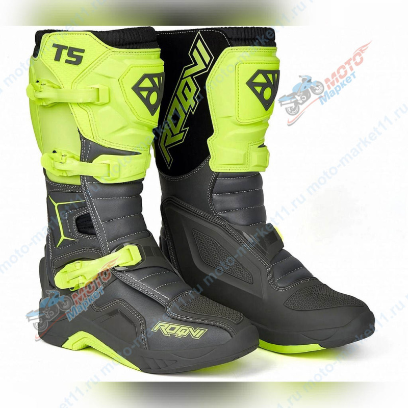 Мотоботы ROQVI T5 для мужчин предназначены для надежной защиты ног гонщиков, преданно увлеченных мотокроссом. Они изготовлены из кожи, сочетаемой с высококачественным синтетическим материалом. Такой материал, включая подошву, обладает устойчивостью к воздействию масла и бензина. Эти боты с живописным дизайном и эргономичной посадкой выделяются не только своим внешним видом, но и обеспечивают приятные ощущения. ROQVI T5 обладают рядом особенностей: застегиваются они при помощи четырех сменных застежек с регулируемыми ремешками, а фиксируются широкой липучкой сверху. Литая подошва из вулканизированной резины обеспечивает надежное сцепление с поверхностью подножек. Усиленный носок и литые пластиковые протекторы создают комплексную защиту для ног. Вставки из термоустойчивой замши обеспечивают безопасность при контакте с горячими деталями мотоцикла. Дышащая и влагонепроницаемая подкладка гарантирует комфорт даже при длительном использовании. Гофрированные вставки обеспечивают свободное движение ноги.