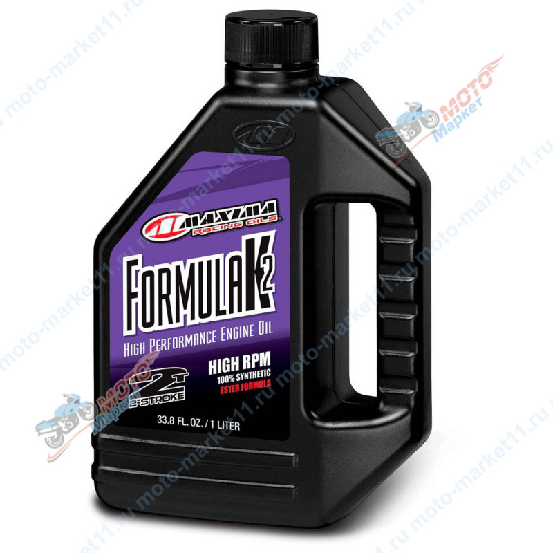 Масло MAXIMA 2T Formula K2 Racing MX/Offroad 1 литр – синтетическое масло для 2-тактных двигателей мотоциклов и других видов техники, используемых в суровых условиях соревнований и внедорожных заездов.