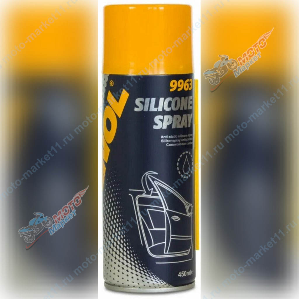 Silicone Spray – универсальное защитное водостойкое, изолирующее и антифрикционное средство на основе кремнийорганических соединений. Предназначен, в том числе, для эффективной смазки трущихся поверхностей из разнородных материалов (например металлических и пластиковых) для устранения заедания, скрипа и потрескивания возникающих при эксплуатации автомобиля. Рекомендуется к использованию там, где нежелательно использование смазочных материалов содержащих нефтепродукты и жиры.