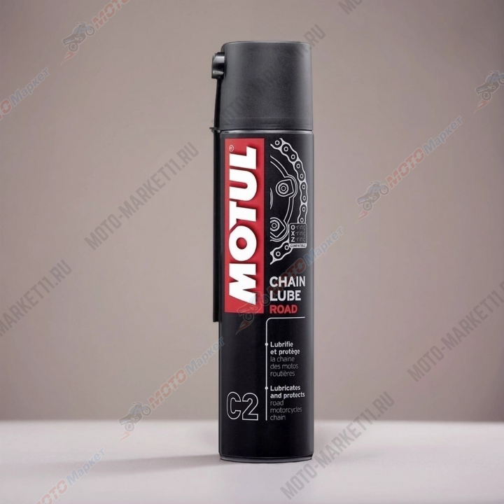 Все типы цепей: для стандартных и кольцеобразных втулок O-RING, X-RING, Z-RING. Дорожный мотоцикл и картинг. Специально рекомендован для сверхскоростных мотоциклов: MOTUL C2 Chain Lube Road остается на цепи даже на очень большой скорости.