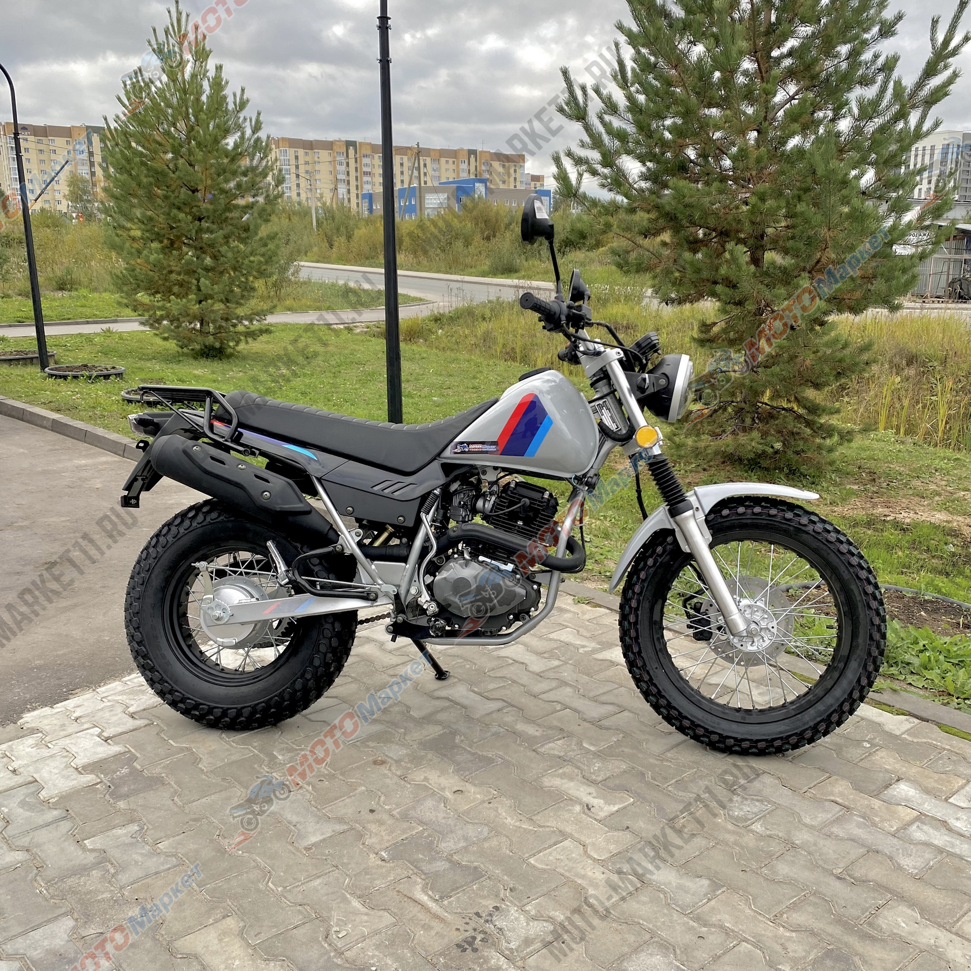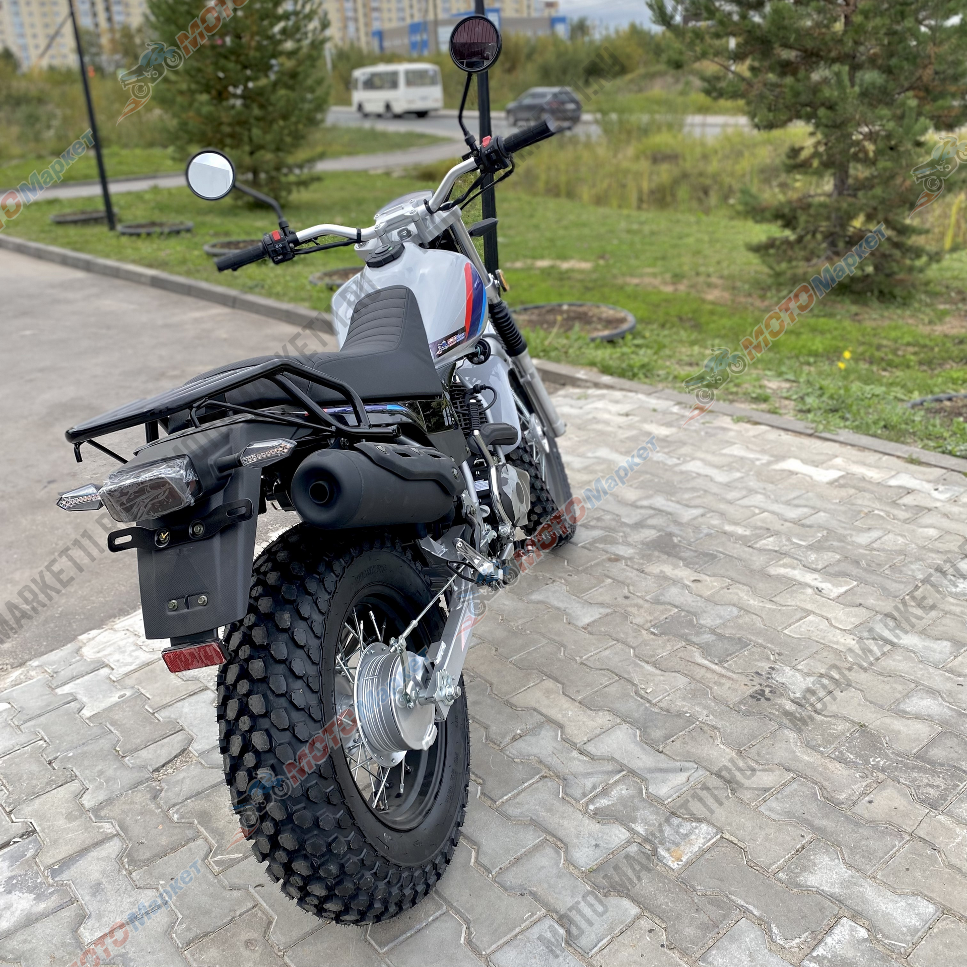 Шины: внедорожные, размерность 130/80-18 (перед) и 160/90-14 (зад)