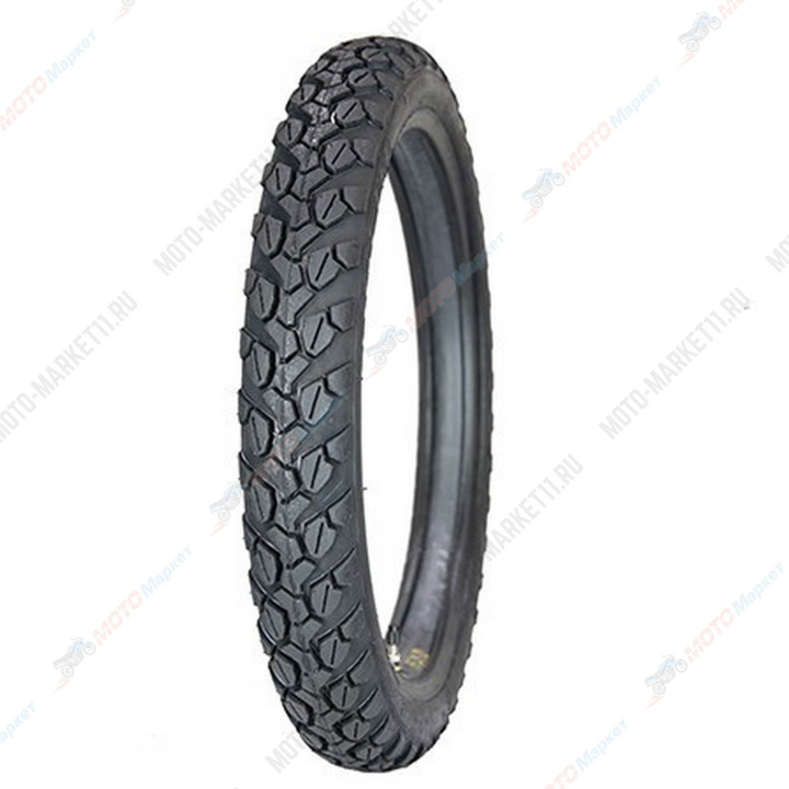 Главная особенность — универсальный симметричный рисунок протектора, который позволяет мотоциклу уверенно и безопасно ехать как по асфальту, так и по просёлочным дорогам при любой погоде.