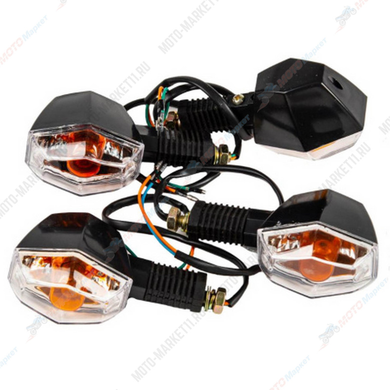 Поворот HY-336 (ромб/белое стекло) — это комплект из четырёх поворотников для мотоцикла. Они обеспечивают безопасность и стиль техники.
