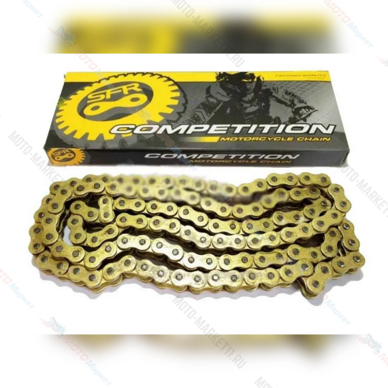 Цепь приводная SFR 520H-O (108 звеньев, сальниковая золотая)Данная модель цепи имеет 108 звеньев и отличается высокой прочностью и надежностью. Она усилена сальниками типа O-ring, которые значительно повышают ресурс цепи и делают ее пригодной для использования в любых дорожных условия. Кроме того, она подходит и для бездорожья. Цепь выполнена из высокопрочной стали с использованием передовых технологий. Ее надежность проверена на испытательных стендах. Производитель гарантирует высокие эксплуатационные качества цепи и ее эффективность. Применяемость Кросс,Эндуро,Дорожный ,Туристический. Мотоцикл . Прекрасная замена японским аналогам. Имеет сертификацию ISO9001:2000