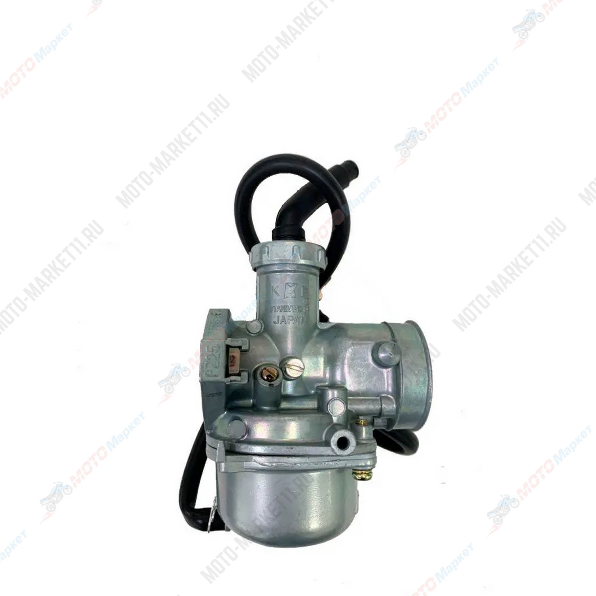 Карбюратор PZ25 с бензокраном и ручной подкачкой справа (артикул 43473) — это мотоциклетная запчасть для двигателей объёмом 125 см³ (CG, CB, 156FMI).