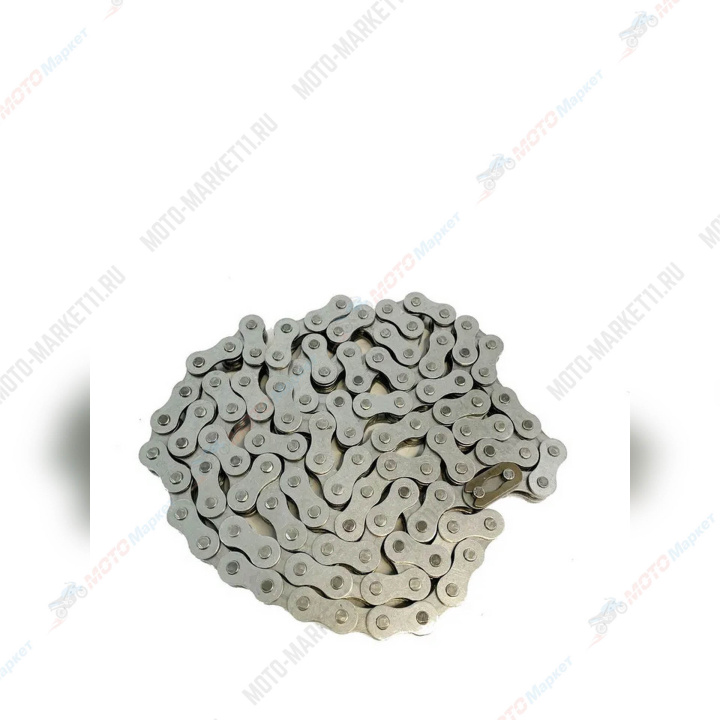 Материал — высококачественная сталь, которая выдерживает значительные нагрузки и устойчива к коррозии. Цепь на 110 звеньев в веломоторе предназначена для приводных систем моделей F50, F80, 142F, 144F, NR50, NR80, T100,72(8P).