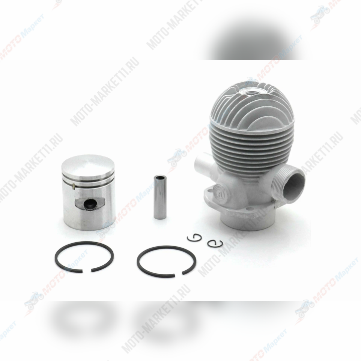 Цилиндр в сборе с поршнем для веломотора — это комплект велозапчастей, который включает в себя цилиндр, поршень, палец и кольца. Он предназначен для полной замены старой и изношенной группы.