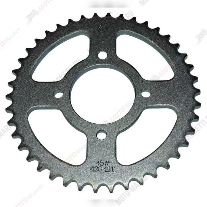 Венец (Z42) 428 (артикул 41633) предназначен для мопеда Nordwing. Это запчасть, которая входит в комплект мототехники и используется для приводной цепи колеса.