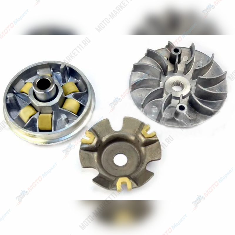 Вариатор в сборе мототехники предназначен для бесступенчатого изменения передаточного отношения и регулирования скорости вращения колёс.