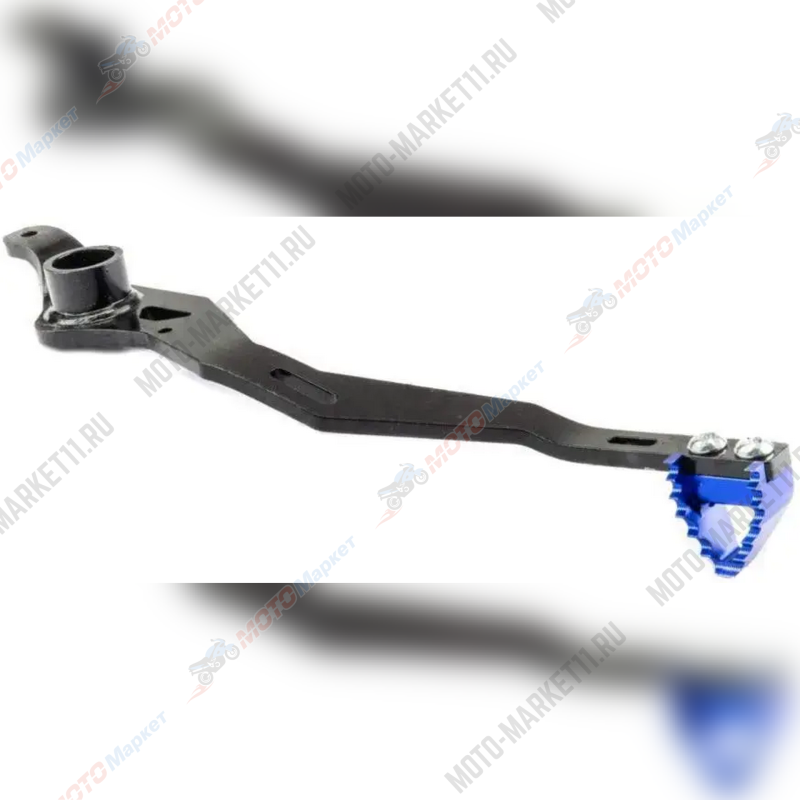 Педаль заднего тормоза CNC предназначена для мотоциклов. Она выполнена из анодированного алюминия и имеет синий цвет. В отличие от большинства стоковых деталей, наконечник педали больше, что удобно при использовании в экстремальных условиях и на дорогах общего пользования. В комплект входит сам наконечник и два крепёжных болта.