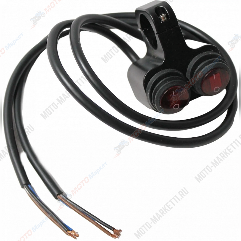 Двойной переключатель ON/OFF с подсветкой, крепление на руль 22 мм, артикул NK-1192 предназначен для включения и выключения различных элементов освещения на мотоцикле, таких как общее освещение, аварийный свет, противотуманные фары, прожектор, головной свет и рабочий свет.