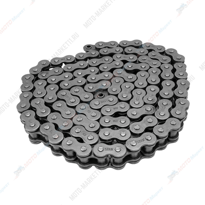 Сальниковая цепь 530 — это универсальная усиленная цепь для мотоциклов. Конструкция такой цепи предполагает предотвращение вытекания смазки из полости между двумя основными контактирующими элементами: валика и втулки. Для этого между внутренней и внешней пластинами помещается сальник — маслоуплотнительное кольцо.