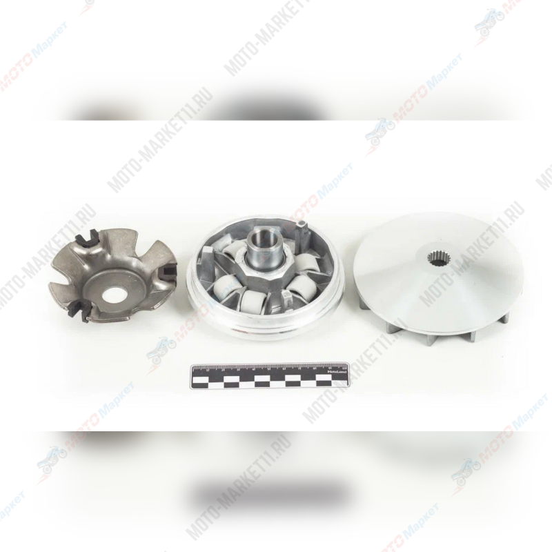 Вариатор в сборе 161см³ с реверсом предназначен для мототехники с двигателем объёмом 161 см³, обеспечивая плавное и эффективное изменение передаточного числа, что позволяет поддерживать оптимальные обороты двигателя при различных условиях движения.