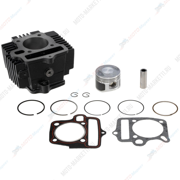 В комплекте: цилиндр, поршень, 2 прокладки (под ГБЦ и ЦПГ), поршневой палец, набор колец для поршня, 2 стопорных кольца.