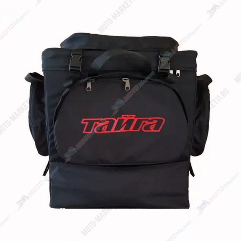 Карманы: два на боковых стенках, спереди карман с надписью «Тайга» и карман на крышке. Карманы закрываются с помощью застёжки-молнии.