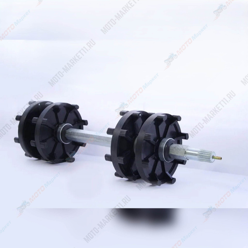 Вал ведущий с колёсами C40200530 предназначен для снегоходов «Тайга», оснащённых гусеничной лентой шириной 500 мм. Производится АО «Русская механика».